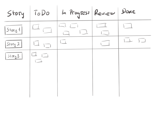 Das Taskboard wird in einem Sprint verwendet um den aktuellen Status zu repräsentieren. Im laufe des Sprints werden Tasks auf dem Taskboard verschoben.